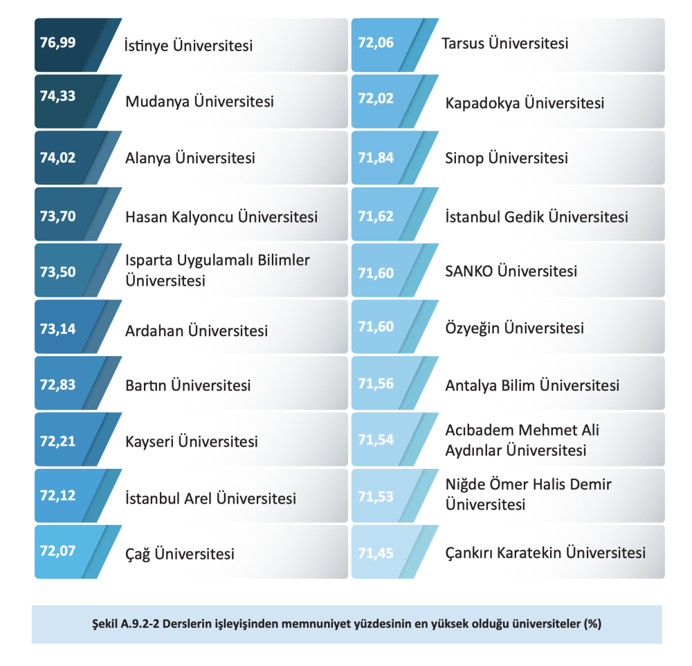 Rapora göre Ardahan Üniversitesi, derslerin işleyişinden memnuniyet oranında %73,14 ile Türkiye genelinde 6. sırada yer aldı. Aynı zamanda Kategori Normalize Atıf Etkisi göstergesinde 7. sıraya yükselerek akademik yayınların bilimsel etkisi bakımından öne çıkan üniversiteler arasında yer aldı.