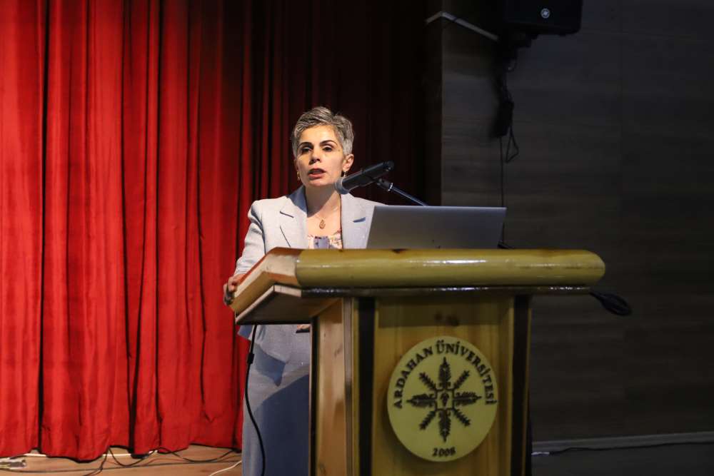 Programın devamında Üniversitemiz Arkeoloji Bölümü öğretim üyeleri Dr. Öğr. Üyesi İsfaf Bozoğlu Bay ve Dr. Öğr. Üyesi Ayşegül Akın Aras, Ardahan ve çevresinde yürütülen güncel kazı ve araştırmalara ilişkin verileri ele aldı.