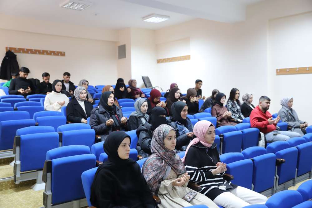 Üniversitemiz Sağlık, Kültür ve Spor Daire Başkanlığına bağlı Bilge İlahiyatçılar Kulübü tarafından düzenlenen “Üç Aylara Merhaba: Anma ve Şiir Dinletisi” programı, akademik ve idari personel ile öğrencilerin katılımıyla gerçekleştirildi.