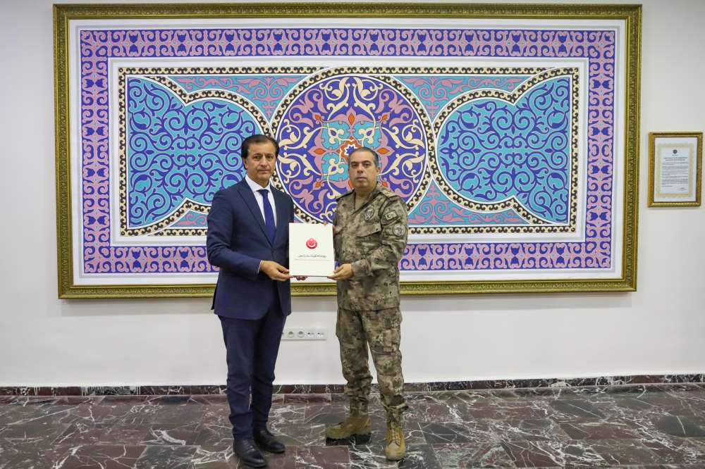 Ardahan İl Emniyet Müdürü Oğuz Tüzün, Rektörümüz Prof. Dr. Öztürk Emiroğlu’nu makamında ziyaret etti. Ziyaret kapsamında, Çanakkale Zaferi’nin sembol değerlerinden biri olarak kabul edilen ve Mehmet Muzaffer’e atfedilen “Bedeli Çanakkale’de Altın Olarak Tesviye Olunacaktır” başlıklı tarihî çalışmadan oluşan özel bir eser Rektörümüze takdim edildi.