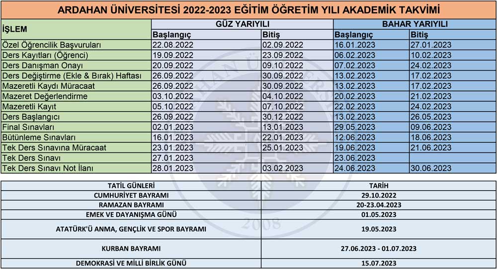 2021 - 2022 Eğitim Öğretim Yılı Akademik Takvimi