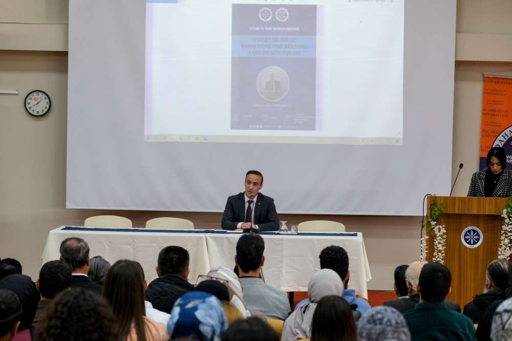 Programda konuşan Posof Kaymakamı Mehmet Fatih Kestioğlu, kaymakamlık mesleğine giden süreçteki deneyimlerini paylaşarak, “Taşrada yer alan tıpkı Ardahan Üniversitesi gibi genç bir üniversiteden mezun olduktan sonra büyük bir disiplin ve kararlılıkla kaymakamlık sınavına hazırlandım. Sizler de azimle çalıştığınız takdirde devletinize ve milletinize hizmet etme fırsatı bulabilirsiniz.” ifadelerini kullandı.