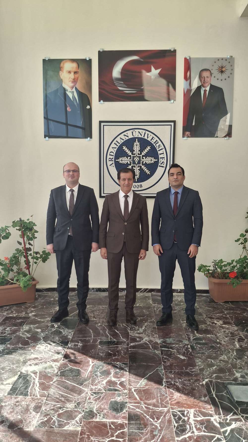 Ardahan Cumhuriyet Başsavcısı Murat Yavuz ve Ağır Ceza Mahkemesi Başkanı Adil Taşkıran, Rektörümüz Prof. Dr. Öztürk Emiroğlu’na iade-i ziyarette bulundu. Rektörümüz, nazik ziyaretleri dolayısıyla konuklarına teşekkür ederek, kurumlar arası iş birliğinin önemine vurgu yaptı. Ziyaret, karşılıklı iyi dileklerin ifade edilmesinin ardından sona erdi.