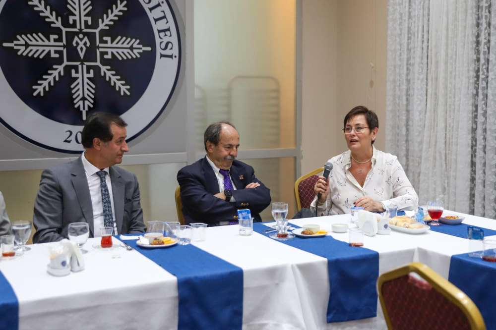 Programda kısa bir konuşma yapan Demet Özkan, Prof. Dr. Mehmet Özkan’ın meslek hayatı boyunca gösterdiği özveriye tanıklık etmenin kendisi için bir gurur olduğunu ifade etti. Üniversite yönetimine ve katılımcılara teşekkür eden Demet Özkan, eşinin Ardahan Üniversitesi ailesiyle çalışmaktan her zaman büyük bir memnuniyet duyduğunu belirtti. Fakülte akademisyenleri ve idari personelin gösterdiği yakınlık ve destek için ayrıca şükranlarını ileten Demet Özkan, programda bulunmaktan mutluluk duyduğunu dile getirdi.