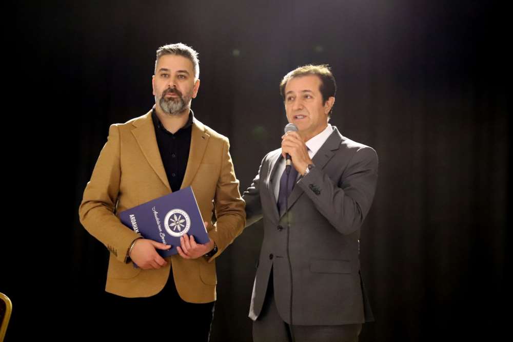 Üniversitemiz Güzel Sanatlar Fakültesi Türk Müziği Bölümü tarafından düzenlenen “Kadim Ezgilerin İzinde – Bağlama Resitali” bugün Hoca Ahmet Yesevi Konferans Salonu’nda icra edildi. Programa; Rektörümüz Prof. Dr. Öztürk Emiroğlu,akademik ve idari personelimiz, öğrencilerimiz ve davetliler katıldı. Dr. Öğr. Üyesi Kemal Özavcı tarafından icra edilen resitalde Anadolu müzik geleneğinin seçkin eserleri bağlama icrasının özgün teknikleriyle dinleyicilere sunuldu. Sanatçı, geleneksel ezgileri müzikolojik bir perspektifle yorumlayarak salonda nitelikli bir sanat atmosferi oluşturdu. Program sonunda Rektörümüz, resitale katkılarından dolayı Dr. Öğr. Üyesi Kemal Özavcı’ya teşekkür belgesi takdim etti.