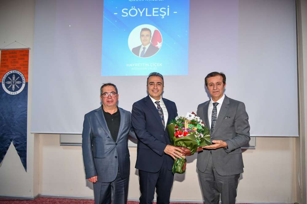 Söyleşi programı, öğrencilerin sorularını yönelttiği interaktif bir bölümle devam etti. Öğrenciler; eğitim, toplumsal değişim, gençliğin sorumlulukları ve kamu yönetimi gibi konularda merak ettikleri hususları Valimiz Hayrettin Çiçek’e sorma imkânı buldu. Programda ayrıca Ardahan Üniversitesi’nin akademik yapısı ve öğrenci yaşamına ilişkin değerlendirmeler de paylaşıldı.