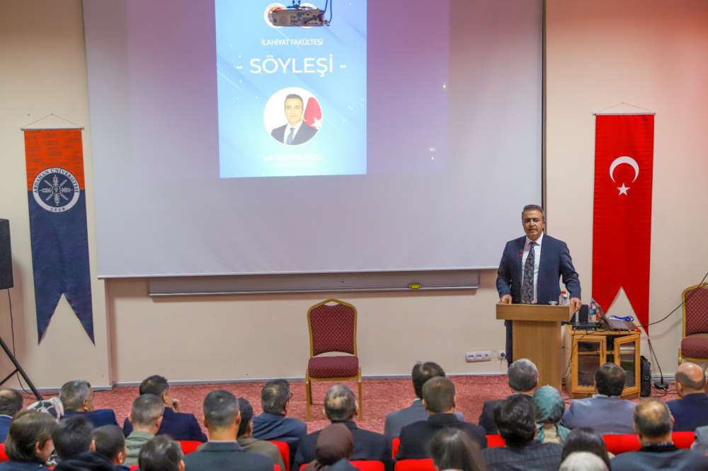 Konuşmasında günümüz dünyasında yaşanan toplumsal ve ahlaki sorunlara da değinen Vali Çiçek, özellikle gençlerin nitelikli eğitim almasının ve sağlam bir değerler sistemiyle yetişmesinin önemini vurguladı. İlahiyat fakültelerinin bu süreçte kritik bir rol üstlendiğini ifade eden Valimiz, dinî bilginin doğru, sahih ve bütüncül bir yaklaşımla aktarılmasının toplumsal huzur açısından belirleyici olduğunu dile getirdi.