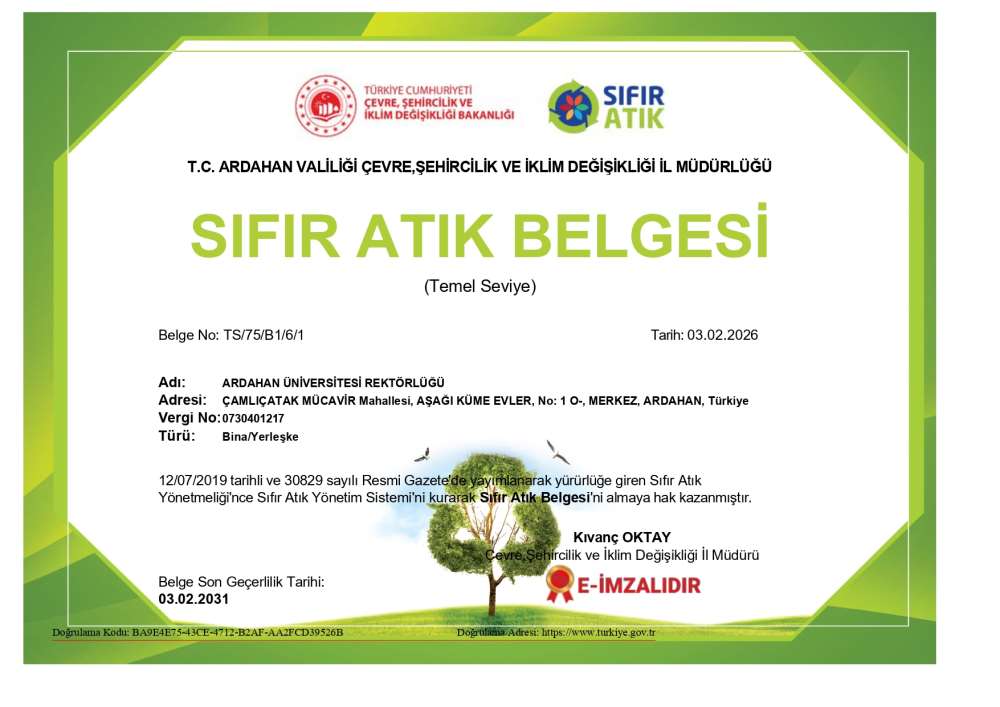 Üniversitemiz Sürdürülebilirlik Ofisi, Çevre, Şehircilik ve İklim Bakanlığının güncel kriterlerini tamamlayarak “Sıfır Atık Belgesi”ni 5 yıl süreyle yeniden almaya hak kazandı. Doğayı koruyan, geleceğe değer katan kampüs vizyonumuzla ilerlemeye devam ediyoruz.