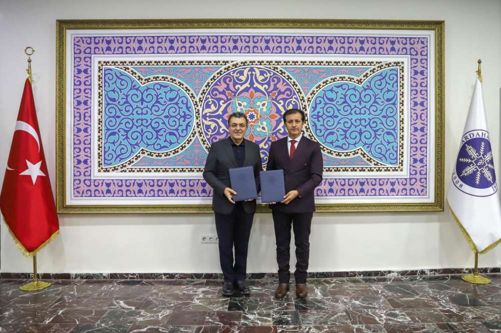 Üniversitemiz ile Ardahan Belediyesi arasında, küresel iklim değişikliğiyle mücadele ve sürdürülebilir kalkınma hedefleri doğrultusunda stratejik iş birliği protokolü imzalandı. Rektörlük makamında düzenlenen imza töreninde, Rektörümüz Prof. Dr. Öztürk Emiroğlu ve Ardahan Belediye Başkanı Faruk Demir bir araya gelerek ortak çalışma protokolünü imzaladı.
