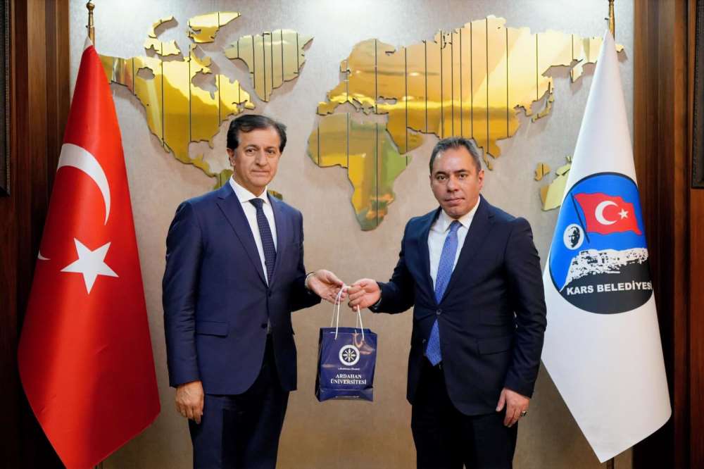 Rektörümüz Prof. Dr. Öztürk Emiroğlu; Iğdır Üniversitesi Rektörü Prof. Dr. Ekrem Gürel ve Azerbaycan Kars Başkonsolosu Zamin Aliyev iştirakleriyle Kars Belediye Başkanı Prof. Dr. Ötüken Senger’i makamında ziyaret etti.