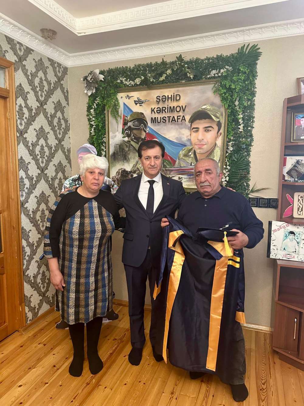 Rektörümüz Prof. Dr. Öztürk Emiroğlu, Azerbaycan Bakü’de Şehit Öğrencimiz Mustafa Kerimov’un Ailesine Mezuniyet Cübbesini Takdim Etti
