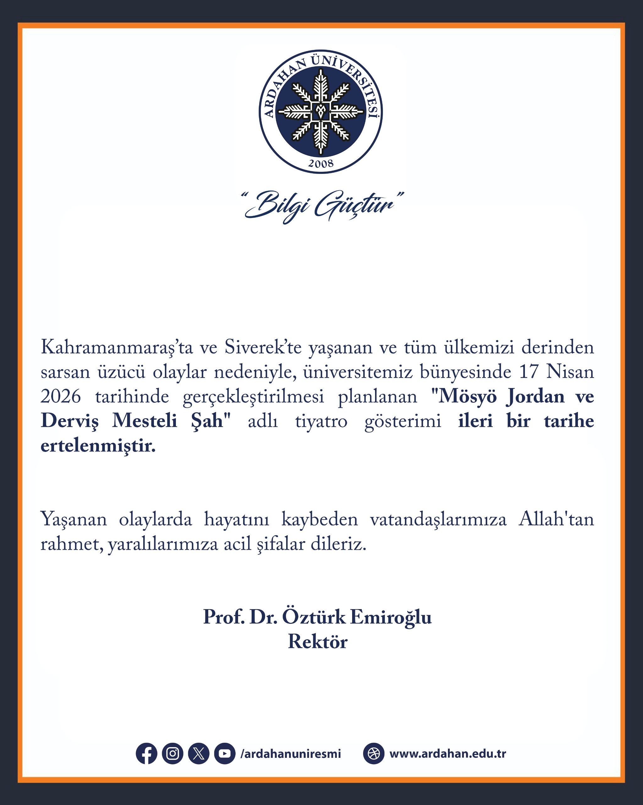 Ardahan Üniversitesi, 22 Mayıs 2008 de kurularak bir dünya üniversitesi olma yolunda ilk adımı atmıştır. Bilimin ve bilginin izinde, bilgiyi arayarak, öğrenerek, üreterek ve paylaşarak bölgenin ve ülkenin sorunlarıyla birlikte uluslararası toplumun da sorunlarını bir ışık gibi aydınlatmak amacıyla her geçen gün gelişerek yoluna devam etmektedir. Siz de bu gelişime ortak olun.