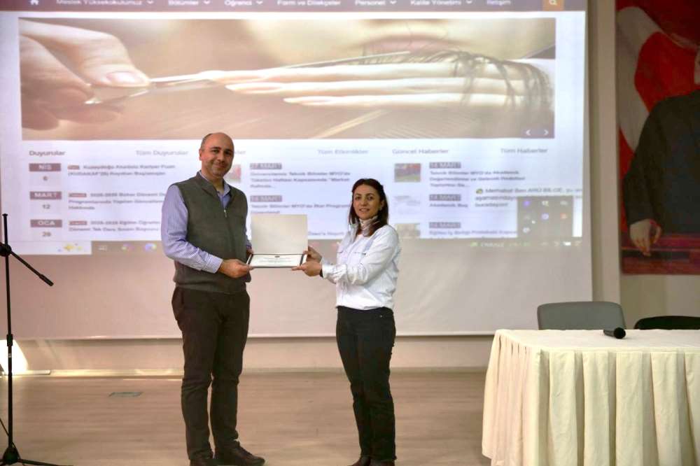 Ardahan Üniversitesi Teknik Bilimler Meslek Yüksekokulu (MYO) ev sahipliğinde 17 Nisan 2026 tarihinde Teknik Bilimler Konferans Salonunda, Mesleki Eğitim Değerlendirme ve Akreditasyon Derneği (MEDEK) tarafından “Program Başvuru Süreçleri” konulu bir bilgilendirme toplantısı düzenlendi. İktisadi ve İdari Bilimler Fakültesi İşletme Bölüm Başkan Yardımcısı ve MEDEK Değerlendiricisi Doç. Dr. Engin Boztepe’nin sunumuyla gerçekleştirilen eğitimde, akran danışmanlığı kapsamında kalite ve akreditasyon süreçlerine dair kritik bilgiler akademik personelimiz ile paylaşıldı. Teknik Bilimler MYO’nun akreditasyon hedefleri doğrultusunda düzenlenen ve soru-cevap bölümüyle verimli şekilde tamamlanan programın sonunda, yüksekokulun eğitim kalitesini artırmaya yönelik katkılarından dolayı Teknik Bilimler MYO Müdürü Dr. Öğr. Üyesi Pınar Kızılkaya tarafından Doç. Dr. Engin Boztepe’ye teşekkür belgesi takdim edildi.