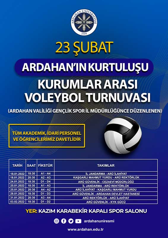 Etkinlik: 23 Şubat Ardahan’ın Kurtuluşu Kurumlar Arası Voleybol Turnuvası