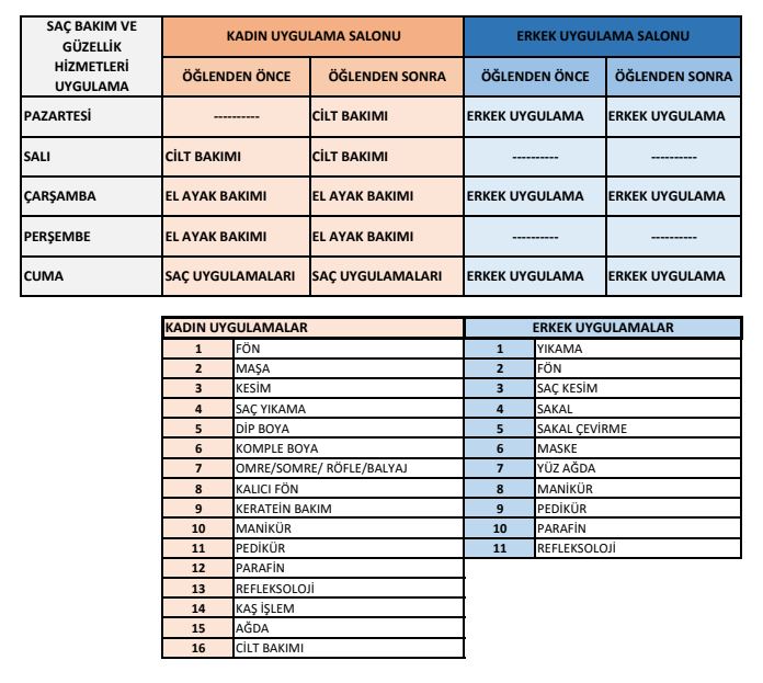Saç Bakımı ve Güzellik Hizmetleri Programı Uygulama Salon Programları