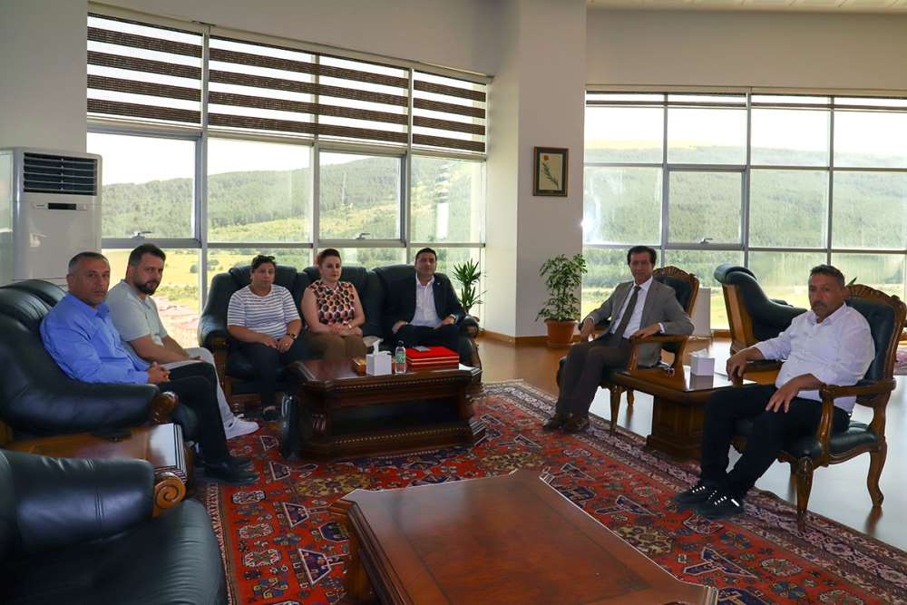 Öz Sağlık-İş Sendikası Ardahan Şube Başkanı Kurtuluş Kayatürk ve beraberindeki yönetim kurulu üyeleri, Rektörümüz Prof. Dr. Öztürk Emiroğlu’nu makamında ziyaret ederek hayırlı olsun dileklerinde bulundu. Rektörümüz, nazik ziyaretlerinden dolayı heyete teşekkür etti. Ziyaret, hatıra fotoğrafı çekimiyle sona erdi.