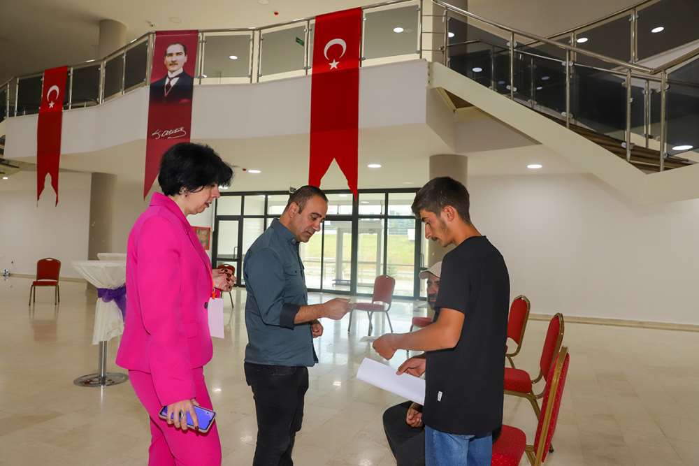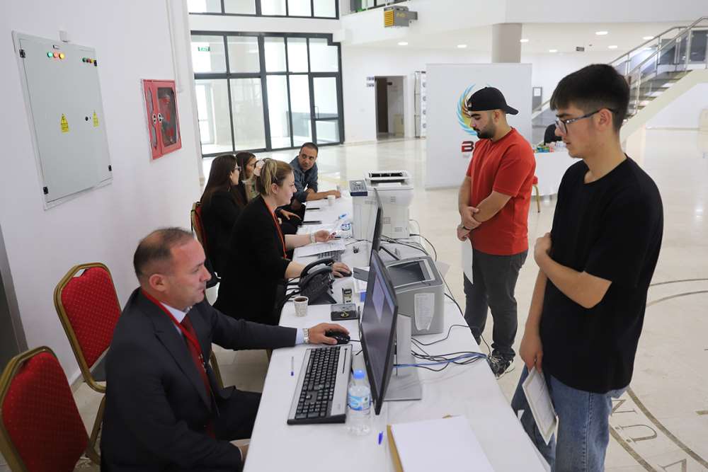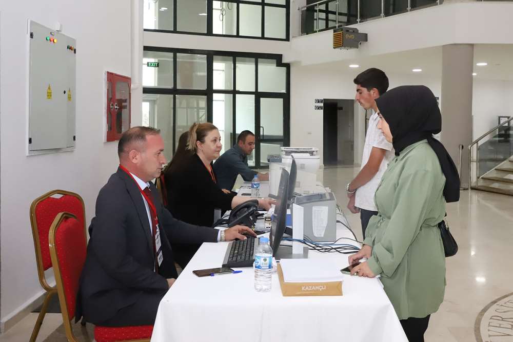 “Ardahan Üniversitesi olarak yeni öğrencilerimizi ailemize katmaktan büyük mutluluk duyuyoruz. Sadece akademik olarak değil, kültürel ve sosyal anlamda da donanımlı bireyler yetiştirmeyi hedefliyoruz. Bu nedenle öğrencilerimizi, şehrimizin ve Üniversitemizin değerleriyle buluşturarak karşılıyoruz. Tüm öğrencilerimize yeni akademik dönemde başarılar diliyorum.” Kayıt sürecinin düzenli ve sorunsuz bir şekilde ilerlemesine önemli katkılar sunan Rektör Yardımcımız Prof. Dr. Zafer Aykanat ve Öğrenci İşleri Daire Başkanımız Evrin Yıldız, yeni öğrencilerimizle yakından ilgileniyor.