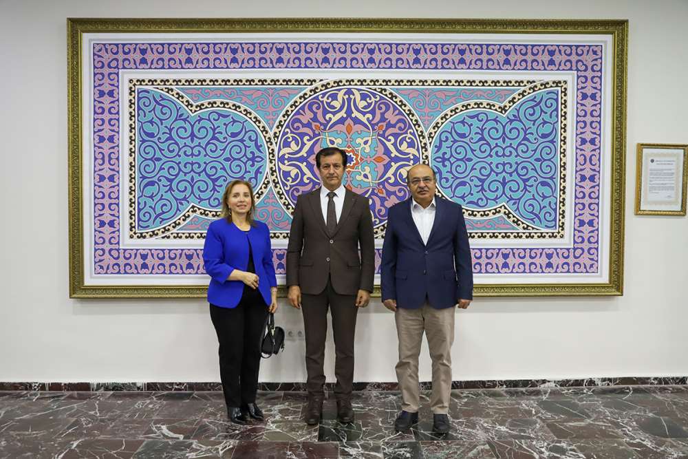 PTT Başmüdürü Jülide Balcı Kaya ve eşi İbrahim Kaya, Rektörümüz Prof. Dr. Öztürk Emiroğlu’na hayırlı olsun ziyaretinde bulundu. Rektörlük makamında gerçekleşen ziyarette, PTT Başmüdürü Kaya yeni görevinden dolayı Rektörümüzü tebrik ederek başarı dileklerini iletti. Ziyaretten duyduğu memnuniyeti ifade eden Rektörümüz Prof. Dr. Öztürk Emiroğlu, nazik ziyaretleri için PTT Başmüdürü Jülide Balcı Kaya ve eşi İbrahim Kaya’ya teşekkür etti.