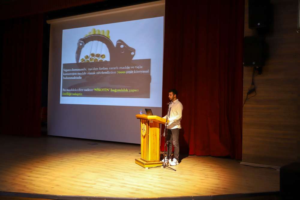 Aşık Şenlik Kültür Merkezi’nde düzenlenen programın sunumu Hemşire Sevde Karabulut tarafından yapıldı. Konferansta; bağımlılık türleri, bağımlılığın birey ve toplum üzerindeki etkileri ile koruyucu ve önleyici yaklaşımlar ele alındı.