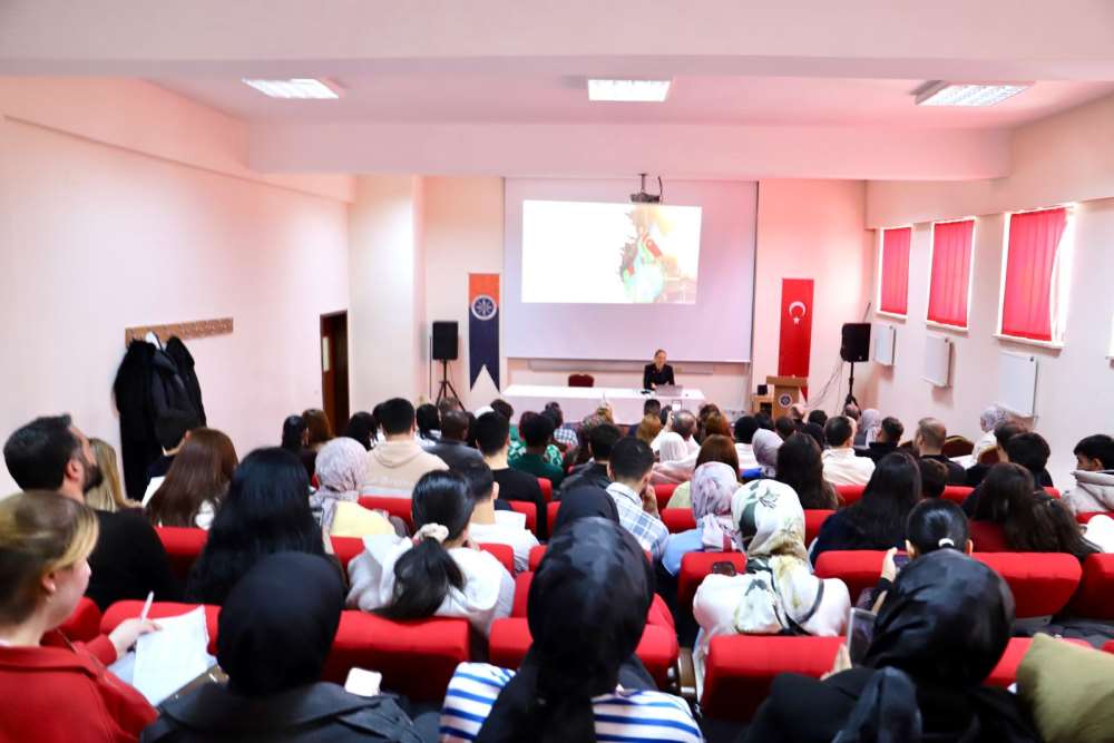Üniversitemiz İnsani Bilimler ve Edebiyat Fakültesi bünyesinde, Çağdaş Türk Lehçeleri ve Edebiyatları Bölümü ile Türk Dili ve Edebiyatı Bölümü iş birliğiyle düzenlenen “Geçmişten Günümüze Azerbaycan” başlıklı konferans, 25 Mart 2026 tarihinde İBEF Nazım Hikmet Konferans Salonunda gerçekleştirildi. Azerbaycan’ın tarihsel derinliği, dilsel zenginliği, kültürel mirası, milli kimlik mücadelesi ve Karabağ Zaferi’nin Türk dünyası için öneminin vurgulandığı etkinliğe; çok sayıda öğrencimiz ile üniversitemizin akademik ve idari personeli katılım sağladı.