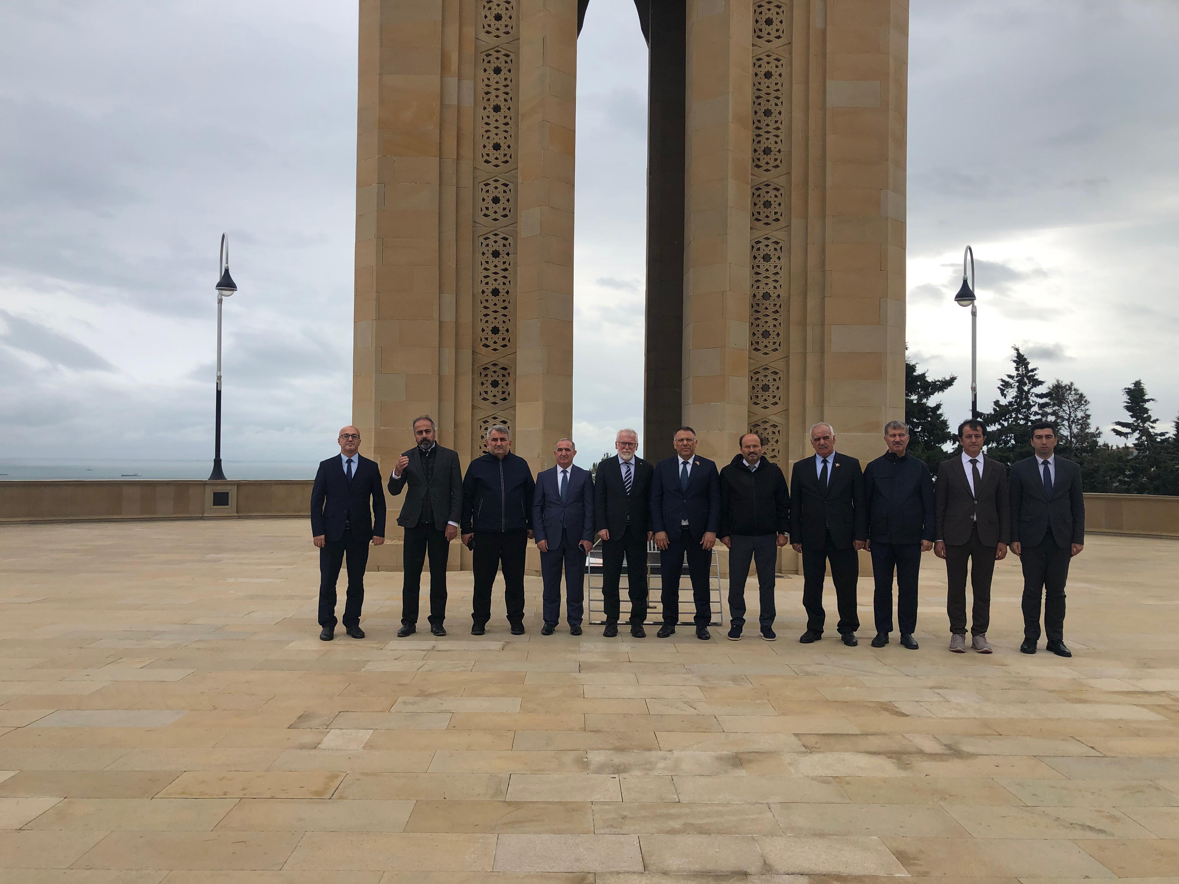 Azerbaycan Cumhuriyeti Diaspora İş Üzere Devlet Komitesi çalışanları ile Komite’nin daveti üzerine Bakü’de bulunan Türkiye’nin Iğdır, Kars Kafkas, Artvin Çoruh, Ağrı İbrahim Çeçen, Bolu Abant İzzet Baysal, Erzurum Teknik, Van Yüzüncü Yıl ve Ardahan üniversitelerinin rektörleri, 27 Eylül -Anım Günü münasebetiyle Vatan Muharebesi’nin simgelerinden biri olan Zafer Parkı’nı ziyaret etti. Ziyaret kapsamında Rektörümüz Prof. Dr. Öztürk Emiroğlu ile diğer üniversite rektörleri ve Komite çalışanları, anıt taşının önüne karanfil bırakarak ülkenin bağımsızlığı ve toprak bütünlüğü uğruna şehit olan kahramanların aziz hatırasını rahmet ve minnetle andılar. Ardından Azerbaycan topraklarında görev yaparken şehit düşen Mehmetçiklerimizin hatırasını yaşatan Türk Şehitliği Anıtı’na geçildi. Burada da şehitlerimizin ruhuna dualar okunarak, Türkiye ile Azerbaycan’ın ebedî kardeşlik bağları bir kez daha güçlü bir şekilde vurgulandı. Şehitlik ziyaretleri, iki milletin ortak tarihi ve gönül birliğini hatırlatması bakımından büyük anlam taşımaktadır.