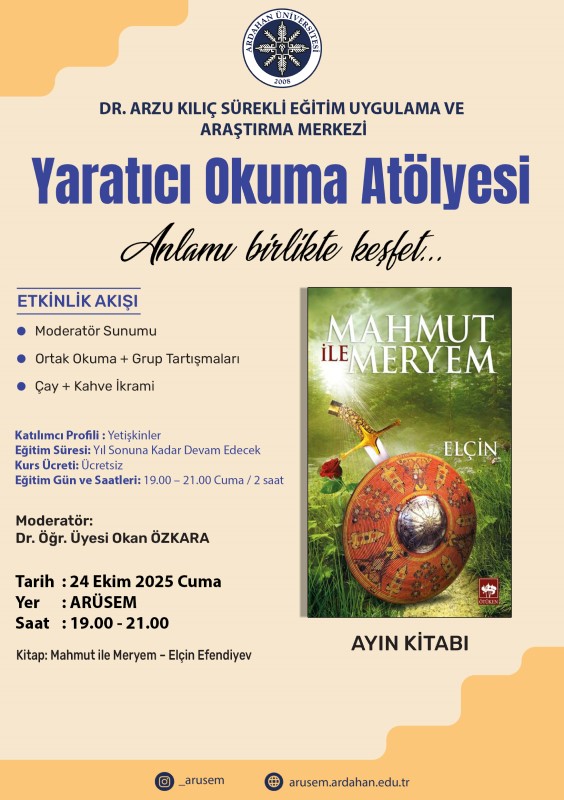 ARÜSEM Yaratıcı Okuma Atölyesi Kurusu için Tıklayınız..