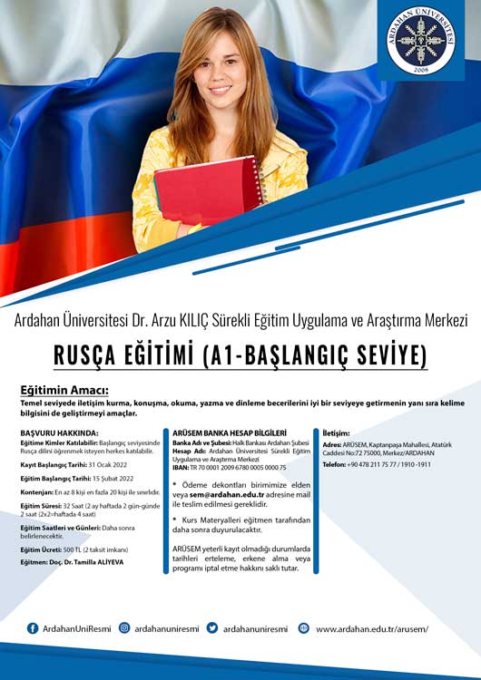ARÜSEM Rusça Eğitimi (A-1 Başlangıç Seviye) Başvuruları Devam Etmektedir.