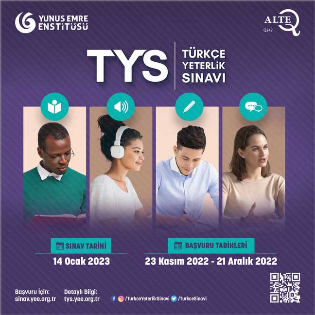 Türkçe Yeterlik Sınavının (TYS) bu yıl 14 Ocak 2023 tarihinde yapılacağı ve Sınava başvurunun 23 Kasım - 21 Aralık 2022 tarihleri arasında yapılabileceği belirtilmektedir.