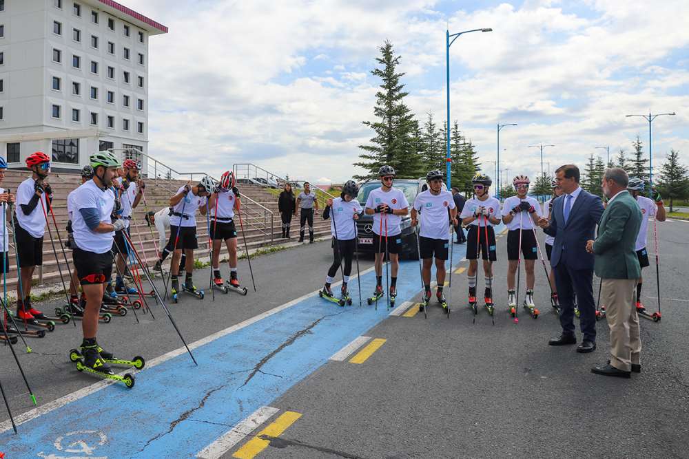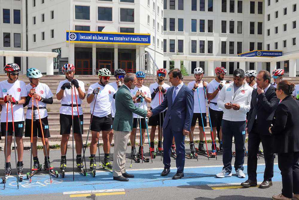 Milano‑Cortina 2026 Kış Olimpiyatları’na hazırlanan Kayaklı Koşu Milli Takımı, Üniversitemiz yerleşkesinde düzenlenen güç geliştirme kampında yoğun antrenman yapıyor. Rektörümüz Prof. Dr. Öztürk Emiroğlu, Kayaklı Koşu Teknik Kurul Başkanı ve Kamp Müdürü Seyfullah Bayraktar, kampa katılan milli sporcular ve antrenörleriyle sohbet ederek, kendilerine başarılar diledi. Bayraktar, yerleşkemizin fizik şartlarının ve asfalt yollarının kayaklı koşu antremanları için birçok avantaj sunduğunu belirtti. 40 milli sporcunun, tekerlekli kayak (roller‑ski) ile yüksek tempolu antrenmanlar yaptığı kamp 13 Temmuz tarihinde sona erecek.