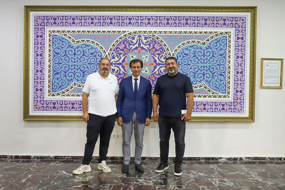 Ardahan Kuzey Yıldızı Oteli İşletmecisi Kenan Yıldız ile Star Arena ve Al Giyin Mağazalarının İşletmecisi Ergin Balcı, Üniversitemiz Rektörü Prof. Dr. Öztürk Emiroğlu’nu makamında ziyaret etti. Rektörümüz, nazik ziyaretlerinden dolayı Yıldız ve Balcı’ya teşekkür ederek, üniversite-şehir bütünleşmesi açısından bu tür temasların önemine dikkat çekti. Ziyaret, hatıra fotoğrafı çekimiyle sona erdi.