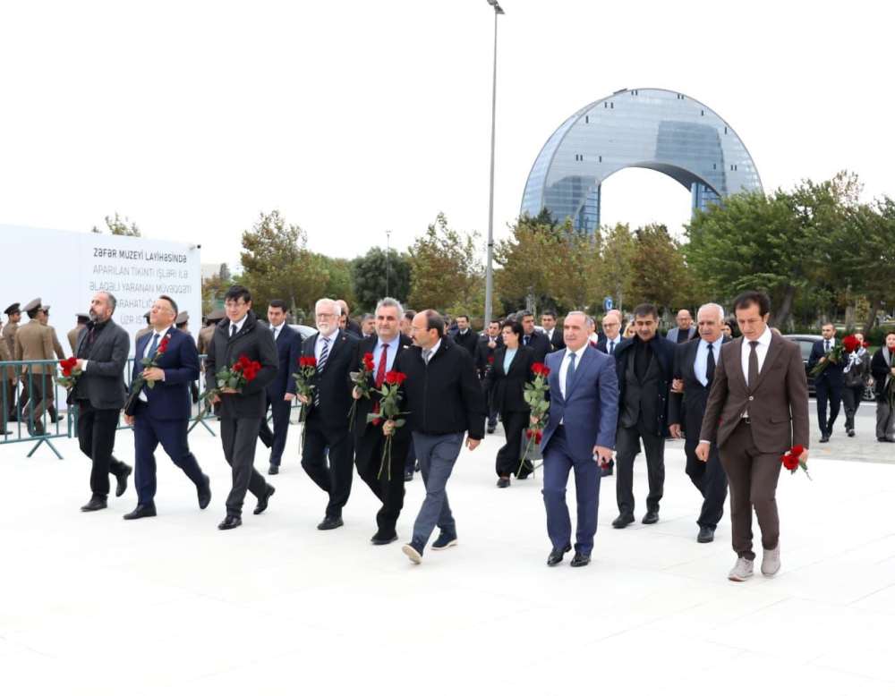 Azerbaycan Cumhuriyeti Diaspora İş Üzere Devlet Komitesi çalışanları ile Komite’nin daveti üzerine Bakü’de bulunan Türkiye’nin Iğdır, Kars Kafkas, Artvin Çoruh, Ağrı İbrahim Çeçen, Bolu Abant İzzet Baysal, Erzurum Teknik, Van Yüzüncü Yıl ve Ardahan üniversitelerinin rektörleri, 27 Eylül -Anım Günü münasebetiyle Vatan Muharebesi’nin simgelerinden biri olan Zafer Parkı’nı ziyaret etti.  Ziyaret kapsamında Rektörümüz Prof. Dr. Öztürk Emiroğlu ile diğer üniversite rektörleri ve Komite çalışanları, anıt taşının önüne karanfil bırakarak ülkenin bağımsızlığı ve toprak bütünlüğü uğruna şehit olan kahramanların aziz hatırasını rahmet ve minnetle andılar. Ardından Azerbaycan topraklarında görev yaparken şehit düşen Mehmetçiklerimizin hatırasını yaşatan Türk Şehitliği Anıtı’na geçildi. Burada da şehitlerimizin ruhuna dualar okunarak, Türkiye ile Azerbaycan’ın ebedî kardeşlik bağları bir kez daha güçlü bir şekilde vurgulandı. Şehitlik ziyaretleri, iki milletin ortak tarihi ve gönül birliğini hatırlatması bakımından büyük anlam taşımaktadır.