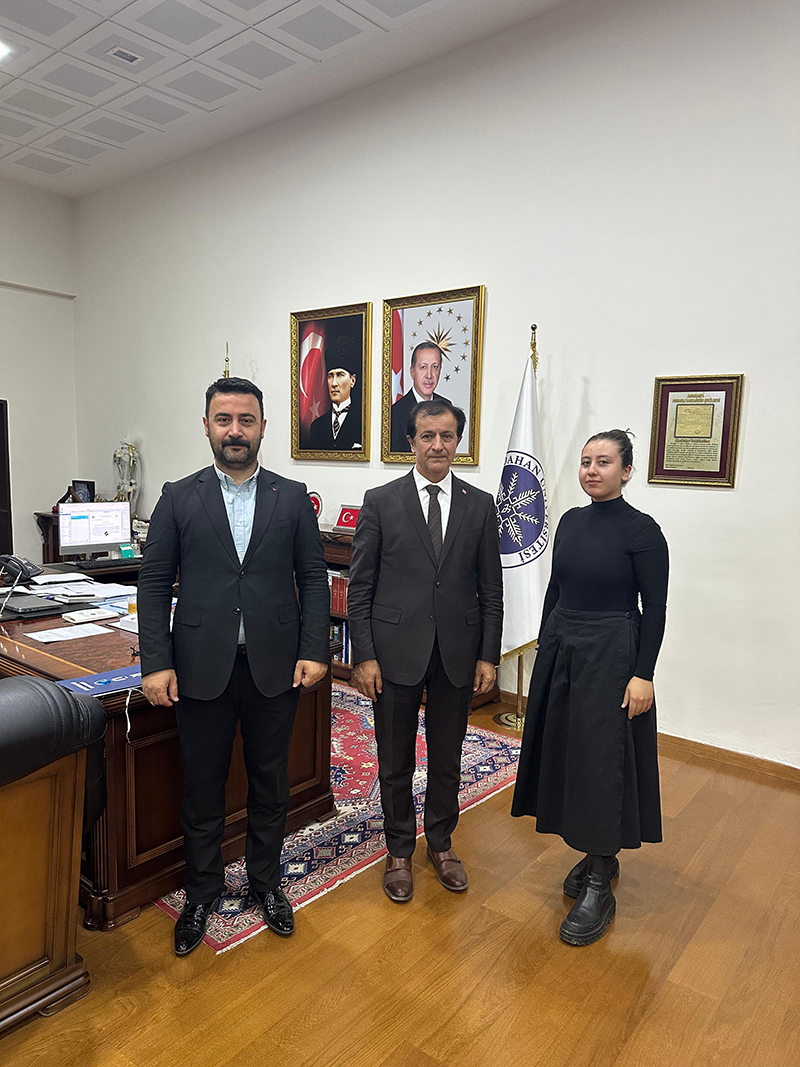 Değişim öğrencimiz Irma Kuibagarova, Dış İlişkiler Koordinatörü Dr. Öğr. Üyesi Doğan Saltaş eşliğinde Rektörümüz Prof. Dr. Öztürk Emiroğlu’nu makamında ziyaret etti. Rektörümüz, öğrencimizi üniversitemizde görmekten duyduğu memnuniyeti dile getirerek başarılar diledi. Ayrıca Kazakistan ile kurulan bu akademik iş birliğinin, üniversitemizin uluslararasılaşma sürecine önemli katkılar sağladığını ifade etti.