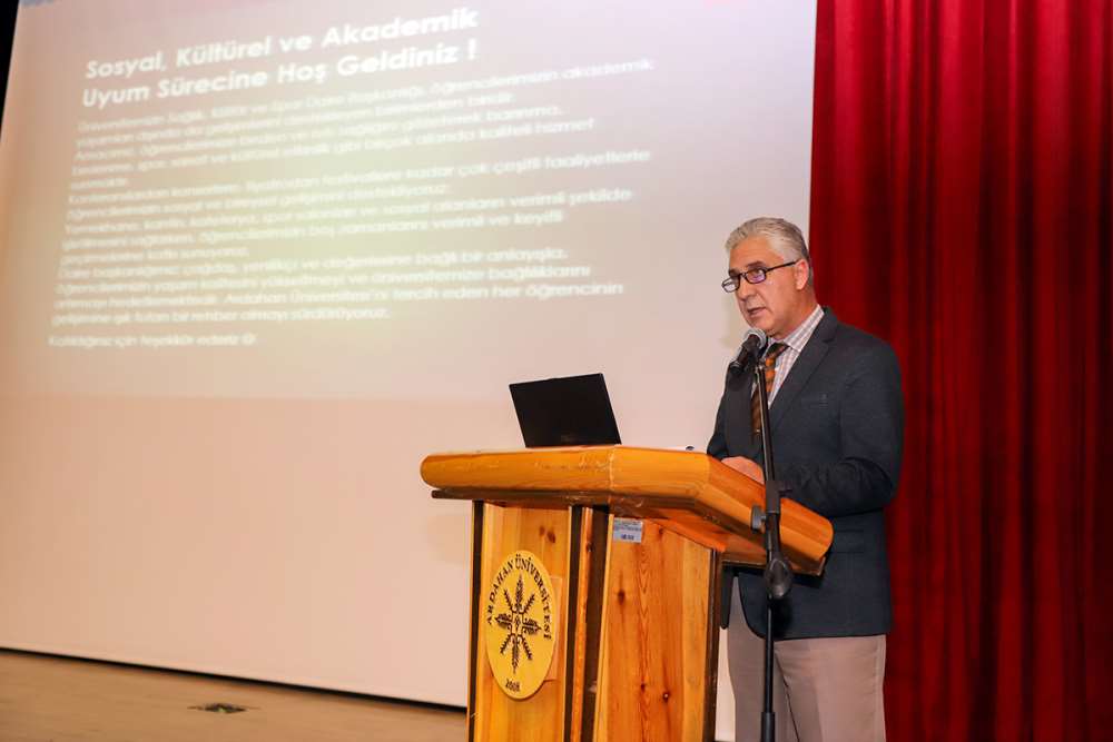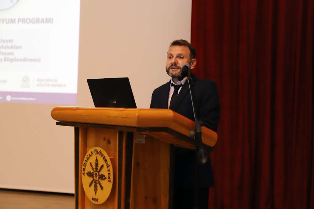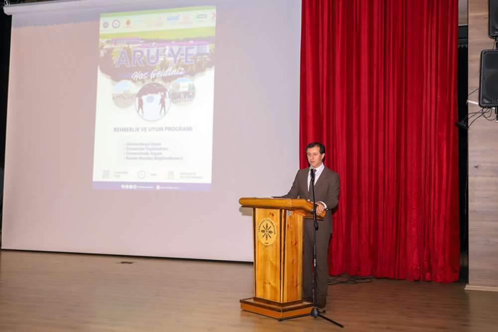 Üniversitemiz 2025–2026 Akademik Yılı Rehberlik ve Uyum Programı’nın ilk etabı, 7 Ekim 2025 tarihinde Aşık Şenlik Kültür Merkezi’nde geniş bir katılımla gerçekleştirildi. Ardahan Üniversitesi Rehberlik ve Uyum Ofisi koordinatörlüğünde düzenlenen programa; Rektörümüz Prof. Dr. Öztürk Emiroğlu, Rektör Yardımcımız Prof. Dr. Zafer Aykanat, fakülte dekanları, yüksekokul müdürleri, daire başkanları, kamu kurum ve kuruluşlarının temsilcileri, akademik ve idari personel ile öğrenciler katıldı.Program; Saygı Duruşu ve İstiklal Marşı’nın ardından Ardahan Üniversitesi Tanıtım Filminin izlenmesiyle başladı. Açılış konuşmasını, Rehberlik ve Uyum Ofisi Koordinatörü Doç. Dr. İbrahim Okan Akkın yaptı. Ardından Öğrenci İşleri Daire Başkanı Evrin Yıldız, Sağlık Kültür ve Spor Daire Başkanı Metin Çimli, Uzaktan Eğitim Uygulama ve Araştırma Merkezi Müdürü ve Bilgi İşlem Daire Başkanı Öğr. Gör. Sinan Üst, Kütüphane ve Dokümantasyon Daire Başkanlığı personeli Pakize Karlı, Ortak Dersler Koordinatörü Öğr. Gör. Feryal Bulut, Dış İlişkiler Ofisi Koordinatörlüğü’nden Öğr. Gör. Mustafa Ünsal, Kariyer Planlama ve Mezun İzleme Uygulama ve Araştırma Merkezi Müdürü Dr. Öğr. Üyesi Zeynep Uludağ ile Sürekli Eğitim Uygulama ve Araştırma Merkezi Müdürü Doç. Dr. Özlem Eştürk bilgilendirme sunumlarını gerçekleştirdiler.