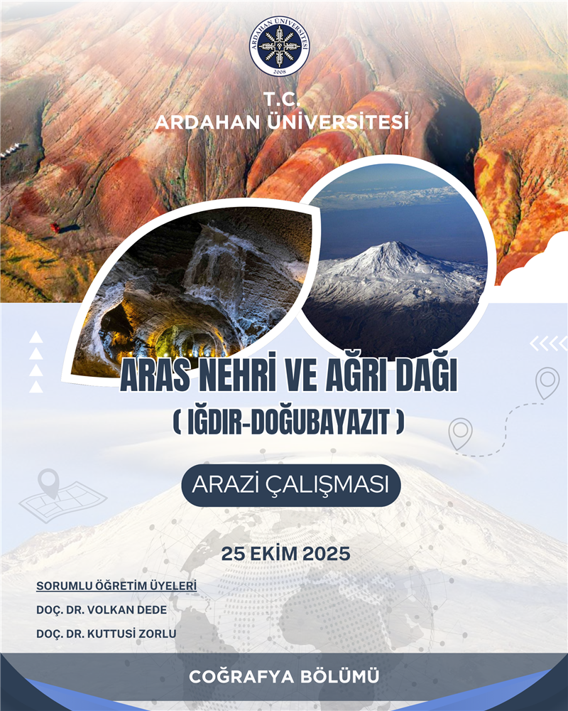 Ardahan Üniversitesi İnsani Bilimler ve Edebiyat Fakültesi Coğrafya Bölümü tarafından 2. sınıf öğrencilerine yönelik olarak Aras Nehri ve Ağrı Dağı çevresinde uygulamalı arazi çalışması gerçekleştirildi.