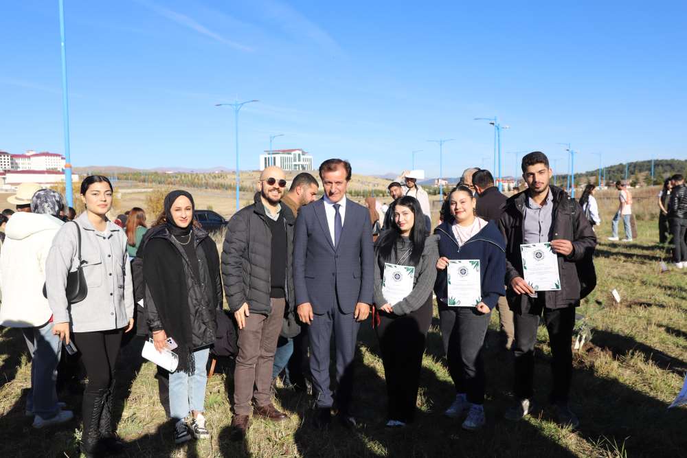 Etkinlik kapsamında, çevreye duyarlılığı ve toplumsal sorumluluk bilinciyle örnek bir davranış sergileyen Sayın Hakan Bayraktar, kampüs alanına dikilmek üzere fidan bağışında bulundu.