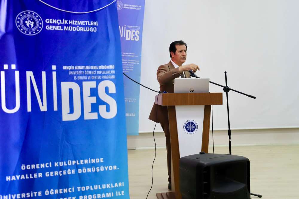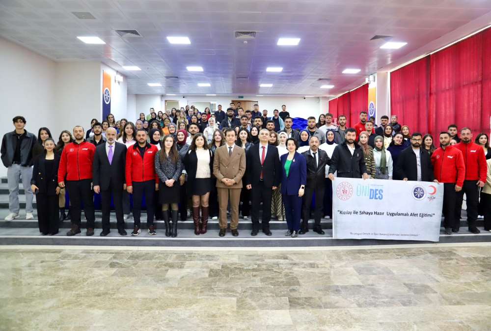 Üniversitemiz Türk Kızılay Gençlik Kulübü ve Acil Yardım ve Afet Yönetimi Bölümü bünyesinde hayata geçirilen “Kızılay ile Sahaya Hazır Uygulamalı Afet Eğitimi” programı, Gençlik ve Spor Bakanlığı ÜNİDES 6. dönem projesi kapsamında desteklenerek başarıyla tamamlandı. Programın kapanış töreni, 17 Nisan 2026 tarihinde Teknik Bilimler Konferans Salonunda gerçekleştirildi. Törene katılan Rektörümüz Prof. Dr. Öztürk Emiroğlu, konuşmasında afetlere hazırlıklı bir nesil yetiştirmenin temel öncelikleri olduğunu vurguladı. Bu kapsamda, söz konusu eğitimle öğrencilerin kazandığı donanımın toplumsal dayanıklılığa güç katacağını ifade etti.