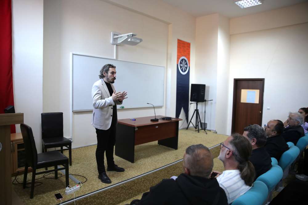 Üniversitemiz akademik ve idari personeli ile öğrencilerin katılım gösterdiği programın ilk oturumunda; halk oyunlarının kuramsal yapısı ve uygulama metotları üzerine kapsamlı bir sunum paylaşıldı. Emekli Sanatçı Öğretim Görevlisi Ahmet Turan Demirbağ, “Halk Oyunlarında Kurgusal Yapı ve Analitik Yaklaşımlar” başlıklı sunumuyla oyunların yapısal çözümlemesini ele alırken; Emekli Öğretim Görevlisi Cavit Şentürk ise “Tecrübeden Sahaya Horon Öğretiminde Ustalık” konulu dersiyle teknik uygulamaların sahadaki önemini vurguladı. Sunumlar kapsamında sergilenen uygulamalı yöre oyunları ile katılımcılara, teorik bilgileri yerinde gözlemleme imkânı sunuldu. İlk günün sanatsal süreci, Giresun Üniversitesi Devlet Konservatuvarı Türk Halk Oyunları Bölümü öğrencilerinin gerçekleştirdiği horon gösterisi ile tamamlandı.