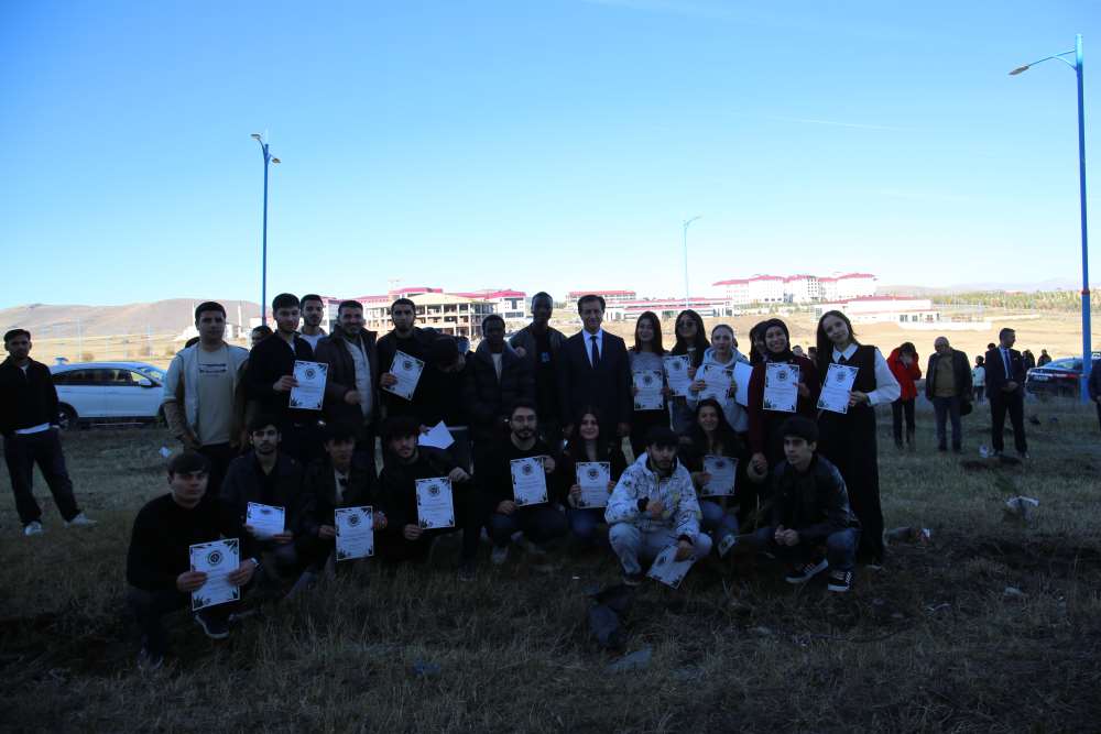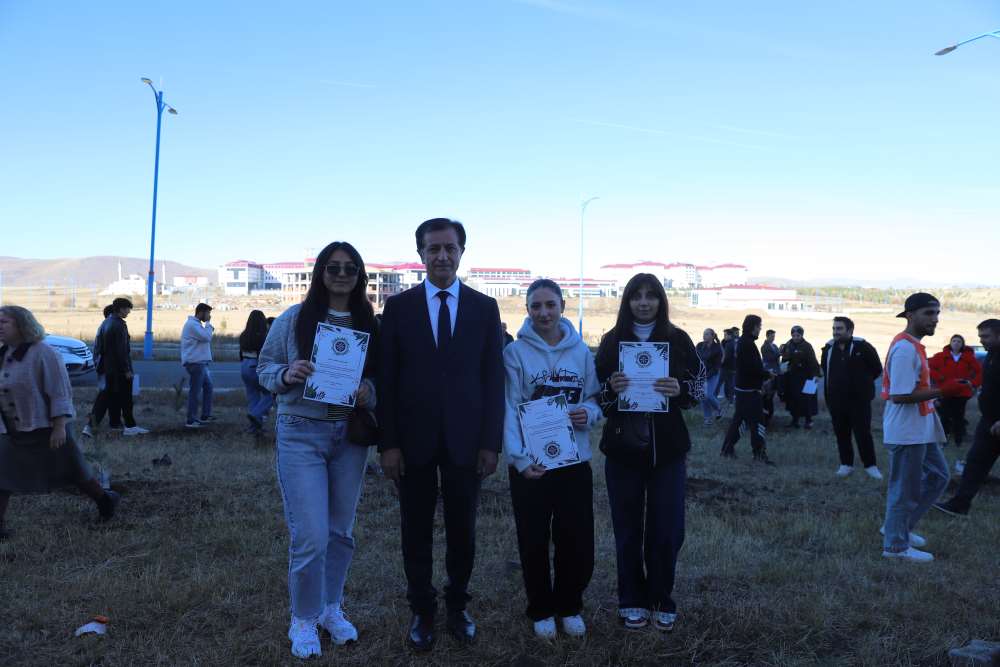Etkinlik kapsamında, çevreye duyarlılığı ve toplumsal sorumluluk bilinciyle örnek bir davranış sergileyen Sayın Hakan Bayraktar, kampüs alanına dikilmek üzere fidan bağışında bulundu.