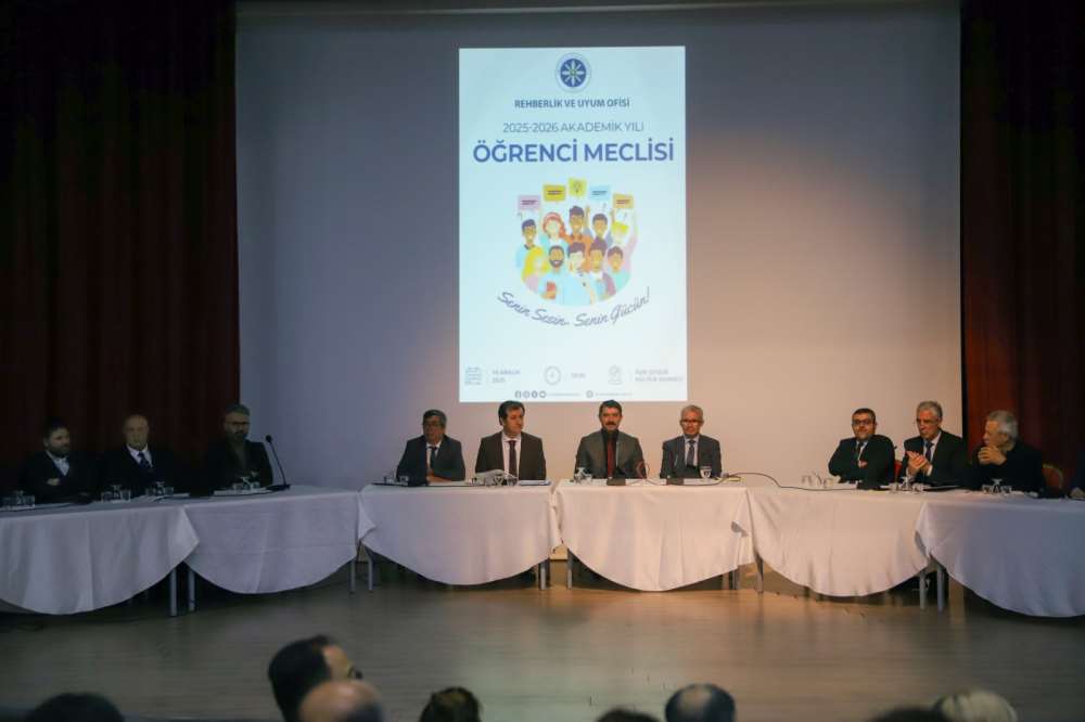 Üniversitemiz Rehberlik ve Uyum Ofisi tarafından koordine edilen 2025–2026 Akademik Yılı Öğrenci Meclisi, üniversite tarihinde ilk kez gerçekleştirilerek öğrenciler ile üniversite yönetimini ortak bir platformda buluşturdu. Aşık Şenlik Kültür Merkezi’nde düzenlenen programa Rektörümüz Prof. Dr. Öztürk Emiroğlu, Rektör Yardımcılarımız, Genel Sekreterimiz, dekanlarımız, daire başkanlarımız, akademik–idari personelimiz ve çok sayıda öğrenci katıldı.
