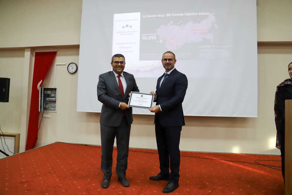 Uluslararası İlişkiler Topluluğu tarafından, 1944 Ahıska Sürgünü’nün 81. yıl dönümü kapsamında düzenlenen “Tarihsel Olgu ve Kimlik İnşası Olarak 1944 Ahıska Sürgünü” konferansı üniversitemizde gerçekleştirildi. Konferansta Dr. Öğr. Üyesi Niyazi İpek, sürgünü tarihsel bir olgunun ötesinde, kimlik inşasını etkileyen çok katmanlı bir süreç olarak ele aldı. Sunumda, Sovyetler Birliği döneminde uygulanan demografi mühendisliği politikaları, sürgün sonrası ortaya çıkan yapısal sorunlar ve Ahıska Türklerinin güncel meseleleri analitik bir çerçevede değerlendirildi. Konferans sonunda İİBF Dekanı Prof. Dr. Ali Kemal Çelik tarafından Dr. Öğr. Üyesi Niyazi İpek’e teşekkür belgesi takdim edildi.