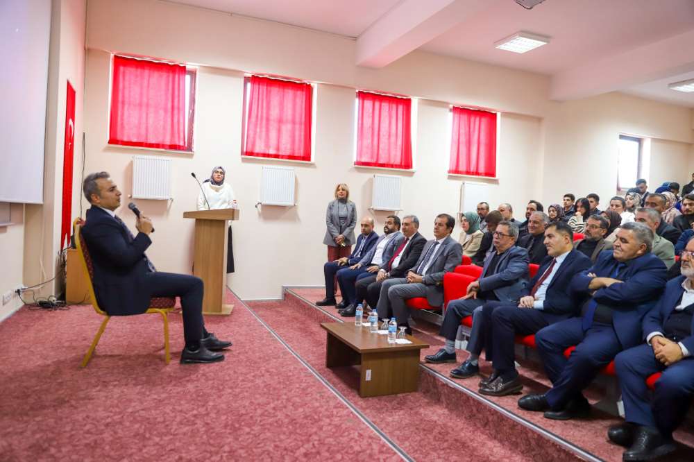 Kur’an-ı Kerim tilavetiyle başlayan program, ilahiyat fakültesi öğrencileri tarafından seslendirilen şiir dinletisiyle devam etti. Ardından kürsüye çıkan Valimiz Hayrettin Çiçek, konuşmasında valilik kurumunun tarihsel gelişimi, kamu idaresinin temel işleyişi ve yöneticilik sorumluluğu üzerine değerlendirmelerde bulundu. Vali Çiçek, valilerin ilde kamu hizmetlerinin koordinasyonundan, kamu düzeninin sağlanmasından ve kurumlar arası iş birliğinden sorumlu olduğunu belirterek, kamu yönetiminin ahlaki temeller üzerine inşa edilmesinin önemine dikkat çekti.