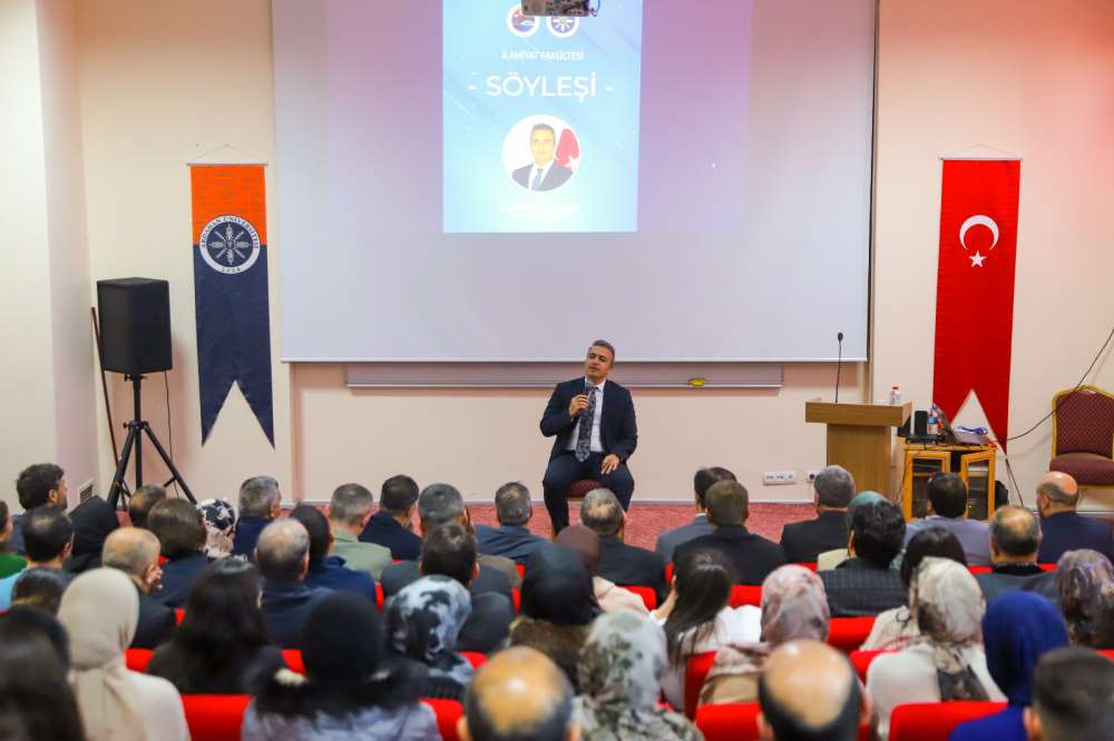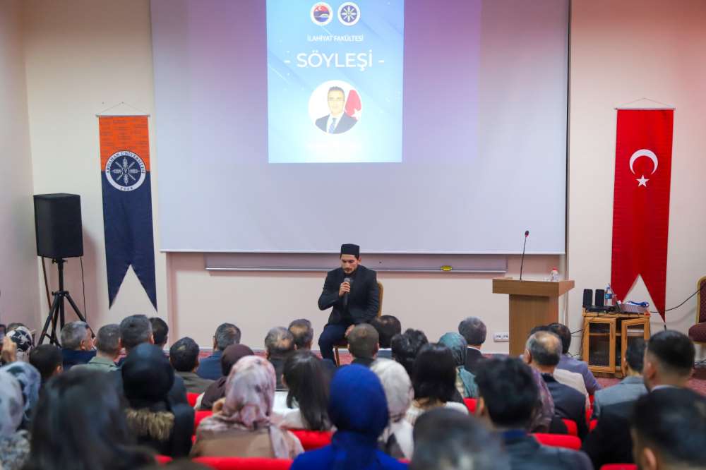 Valimiz Hayrettin Çiçek, Üniversitemizİlahiyat Fakültesi tarafından düzenlenen söyleşi programına katılarak akademisyenler ve öğrencilerle bir araya geldi. Yoğun katılımla gerçekleştirilen programda kamu yönetimi, ahlak, maneviyat, toplumsal sorumluluk ve gençliğin rolü gibi başlıklar ele alındı.