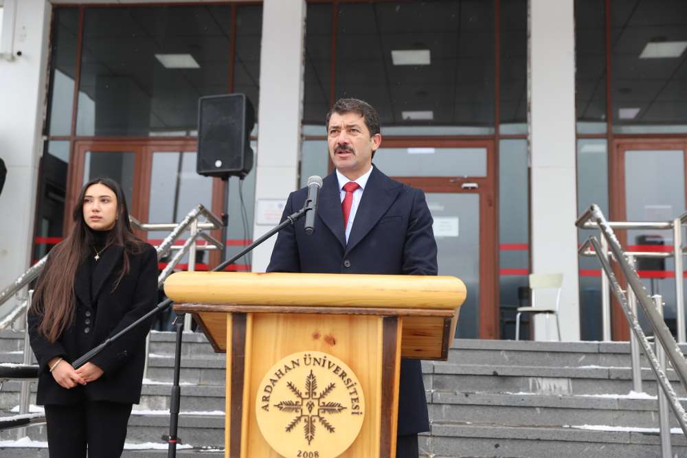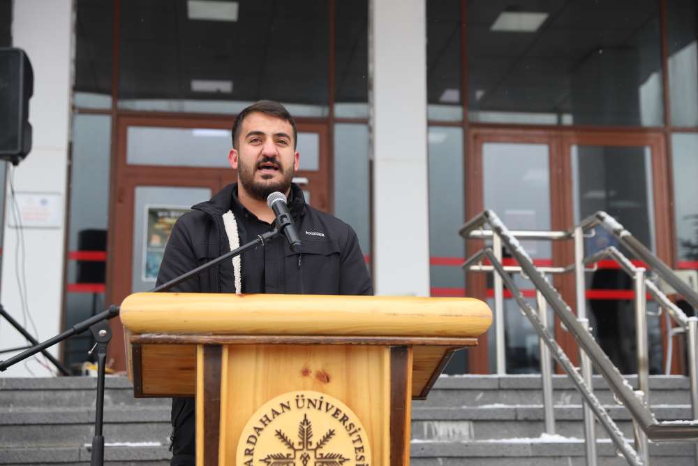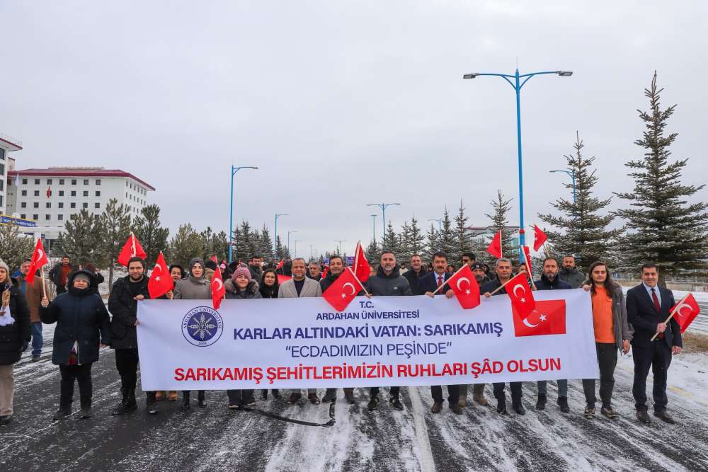“Sarıkamış Harekâtı, Türk dünyasıyla bağlantının kurulmak istendiği; Kafkasya’nın ticaret yolları ve enerji kaynakları nedeniyle büyük güçlerin mücadele sahasına dönüştüğü kritik bir tarihsel kesitte gerçekleşmiştir” ifadelerini kullandı. Sarıkamış’ın Ardahan ve çevresi açısından taşıdığı özel anlama da değinen Prof. Dr. Sarıkaya, “1877–1878 Osmanlı-Rus Savaşı sonrası uzun süre işgal altında kalan bu topraklar için Sarıkamış bir kurtuluş ümidi olarak görülmüştür. Bu süreç, bölgemiz için ağır bedeller ve derin acılarla sonuçlanmıştır” şeklinde konuştu. Program kapsamında öğrenciler tarafından Sarıkamış şehitlerine ithafen şiirler okundu.