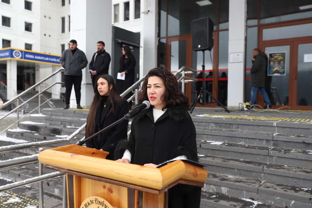 Anma programında konuşan Rektör Yardımcımız Prof. Dr. Zafer Aykanat, Sarıkamış’ı milletimizin ortak hafızasında yer eden büyük bir fedakârlık destanı olarak nitelendirdi. Prof. Dr. Aykanat, “Sarıkamış; imanın imkânsızı zorladığı, yokluğun onura dönüştüğü ve vatan sevgisinin şehadetle taçlandığı büyük bir destandır.” ifadeleriyle Sarıkamış ruhunun tarihsel ve ahlaki boyutuna dikkat çekti. Gençlere hitaben konuşmasını sürdüren Prof. Dr. Aykanat,