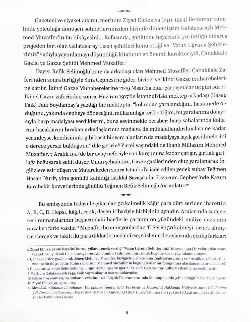 Takdim edilen eser, Çanakkale Cephesi’nde görev yapan Galatasaray Lisesi öğrencisi Mehmed Muzaffer’in, cephede ihtiyaç duyulan malzemelerin temini sürecinde yaşananları ve bu süreçte ortaya çıkan, Osmanlı para tarihinin en dikkat çekici vakalarından biri olan “Mehmed Muzaffer’in Çanakkale Parası” hadisesini ayrıntılı biçimde ele almaktadır.