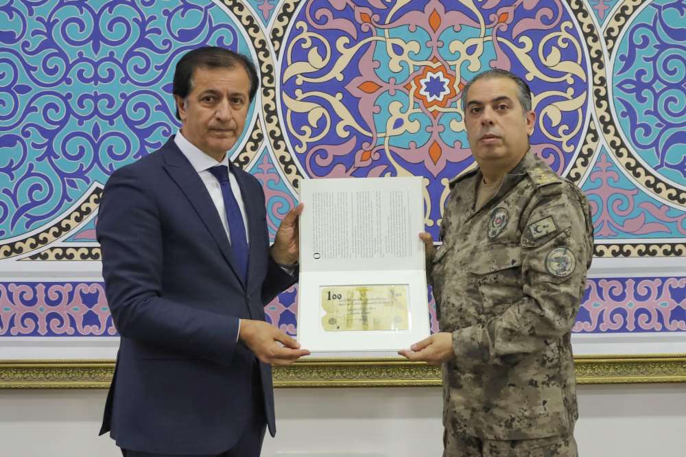 Ardahan İl Emniyet Müdürü Oğuz Tüzün, Rektörümüz Prof. Dr. Öztürk Emiroğlu’nu makamında ziyaret etti. Ziyaret kapsamında, Çanakkale Zaferi’nin sembol değerlerinden biri olarak kabul edilen ve Mehmet Muzaffer’e atfedilen “Bedeli Çanakkale’de Altın Olarak Tesviye Olunacaktır” başlıklı tarihî çalışmadan oluşan özel bir eser Rektörümüze takdim edildi.