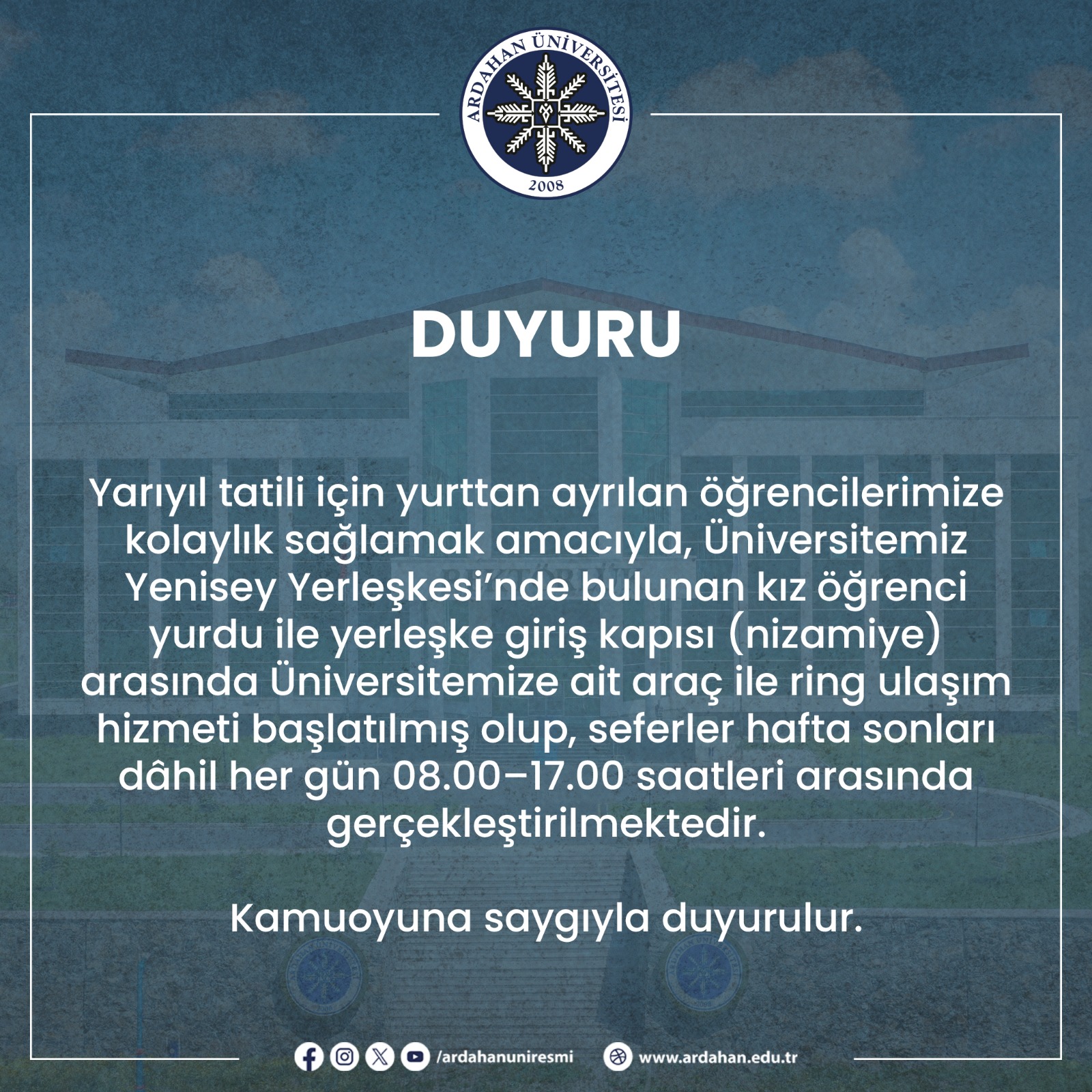 Ardahan Üniversitesi, 22 Mayıs 2008 de kurularak bir dünya üniversitesi olma yolunda ilk adımı atmıştır. Bilimin ve bilginin izinde, bilgiyi arayarak, öğrenerek, üreterek ve paylaşarak bölgenin ve ülkenin sorunlarıyla birlikte uluslararası toplumun da sorunlarını bir ışık gibi aydınlatmak amacıyla her geçen gün gelişerek yoluna devam etmektedir. Siz de bu gelişime ortak olun.