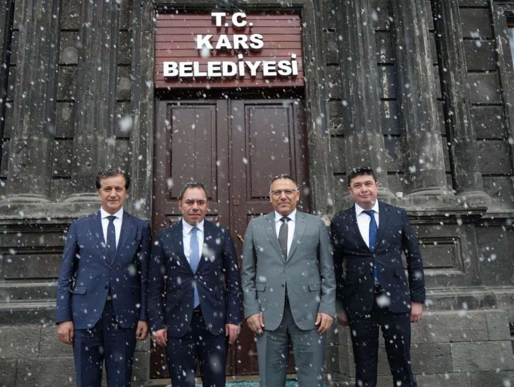 Rektörümüz Prof. Dr. Öztürk Emiroğlu; Iğdır Üniversitesi Rektörü Prof. Dr. Ekrem Gürel ve Azerbaycan Kars Başkonsolosu Zamin Aliyev iştirakleriyle Kars Belediye Başkanı Prof. Dr. Ötüken Senger’i makamında ziyaret etti.