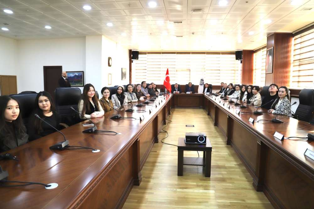 Üniversitemizin uluslararasılaşma stratejisi kapsamında, Kazakistan’dan 2 akademisyen ve 18 öğrenciden oluşan heyet, Rektörümüz Prof. Dr. Öztürk Emiroğlu’nu makamında ziyaret etti. Üniversitemiz Senato Toplantı Odasında gerçekleşen görüşmede; Kazakistan’da faaliyet gösteren Makhambet Utemissov West Kazakhstan University’den ikili anlaşma kapsamında gelen İngiliz Dili ve Edebiyatı Bölümünden 15, Çağdaş Türk Lehçeleri Bölümünden ise 3 olmak üzere toplam 18 öğrenciye, Filoloji Fakültesi Dekanı Aidarbek Akbulatov ile Öğretim Üyesi Gülnar Khazgaliyeva eşlik etti.