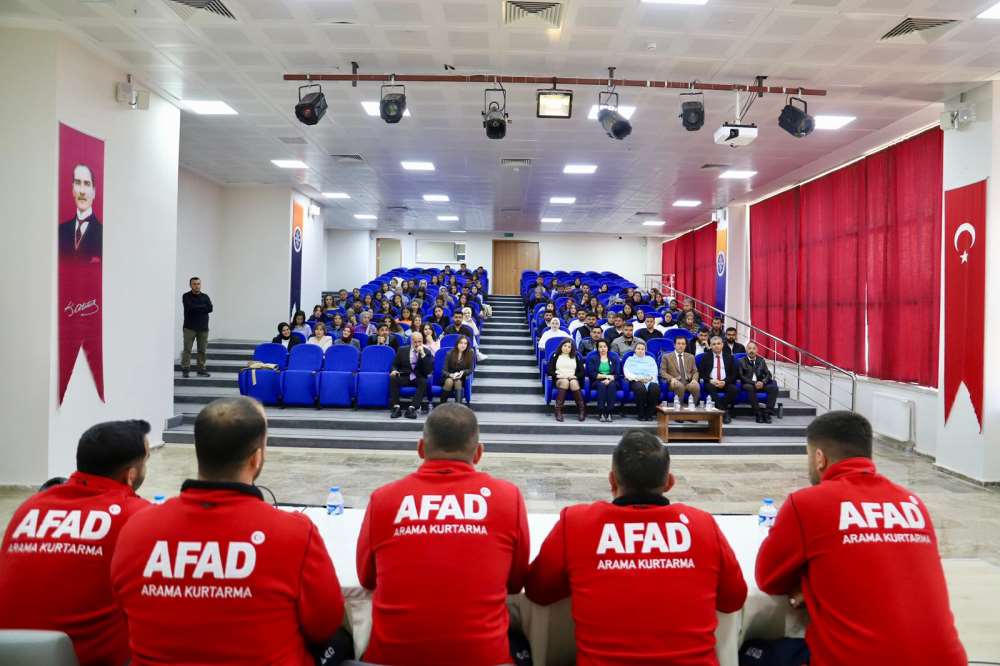 Üniversitemiz Türk Kızılay Gençlik Kulübü ve Acil Yardım ve Afet Yönetimi Bölümü bünyesinde hayata geçirilen “Kızılay ile Sahaya Hazır Uygulamalı Afet Eğitimi” programı, Gençlik ve Spor Bakanlığı ÜNİDES 6. dönem projesi kapsamında desteklenerek başarıyla tamamlandı. Programın kapanış töreni, 17 Nisan 2026 tarihinde Teknik Bilimler Konferans Salonunda gerçekleştirildi. Törene katılan Rektörümüz Prof. Dr. Öztürk Emiroğlu, konuşmasında afetlere hazırlıklı bir nesil yetiştirmenin temel öncelikleri olduğunu vurguladı. Bu kapsamda, söz konusu eğitimle öğrencilerin kazandığı donanımın toplumsal dayanıklılığa güç katacağını ifade etti.